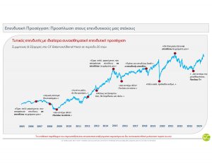 Β. χρονικός ορίζοντας της επένδυσης. Η βασική αρχή είναι ότι όσο μεγαλύτερος είναι ο ορίζοντας, τόσο μεγαλύτερη μεταβλητότητα μπορεί να αντέξει το χαρτοφυλάκιο και ταυτόχρονα δημιουργούνται οι προϋποθέσεις όχι απλά ανάκαμψης από μια δυσάρεστη γεωπολιτική εξέλιξη, αλλά και επίτευξης ιδιαίτερα θετικών αποδόσεων.